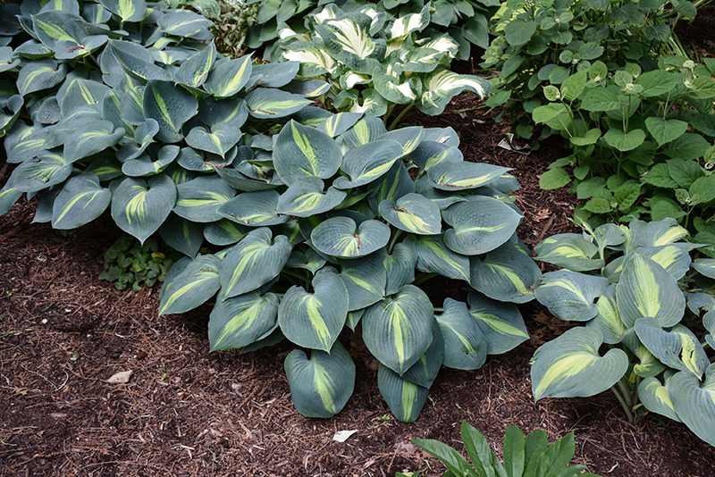 Touch Of Class Hosta will grow to be about 12 inches tall at maturity extending to 24 inches tall with the flowers, with a spread of 24 inches. When grown in masses or used as a bedding plant, individual plants should be spaced approximately 20 inches apart. Its foliage tends to remain dense right to the ground, not requiring facer plants in front. It grows at a medium rate, and under ideal conditions can be expected to live for approximately 10 years. As an herbaceous perennial, this plant will usually die back to the crown each winter, and will regrow from the base each spring. Be careful not to disturb the crown in late winter when it may not be readily seen!